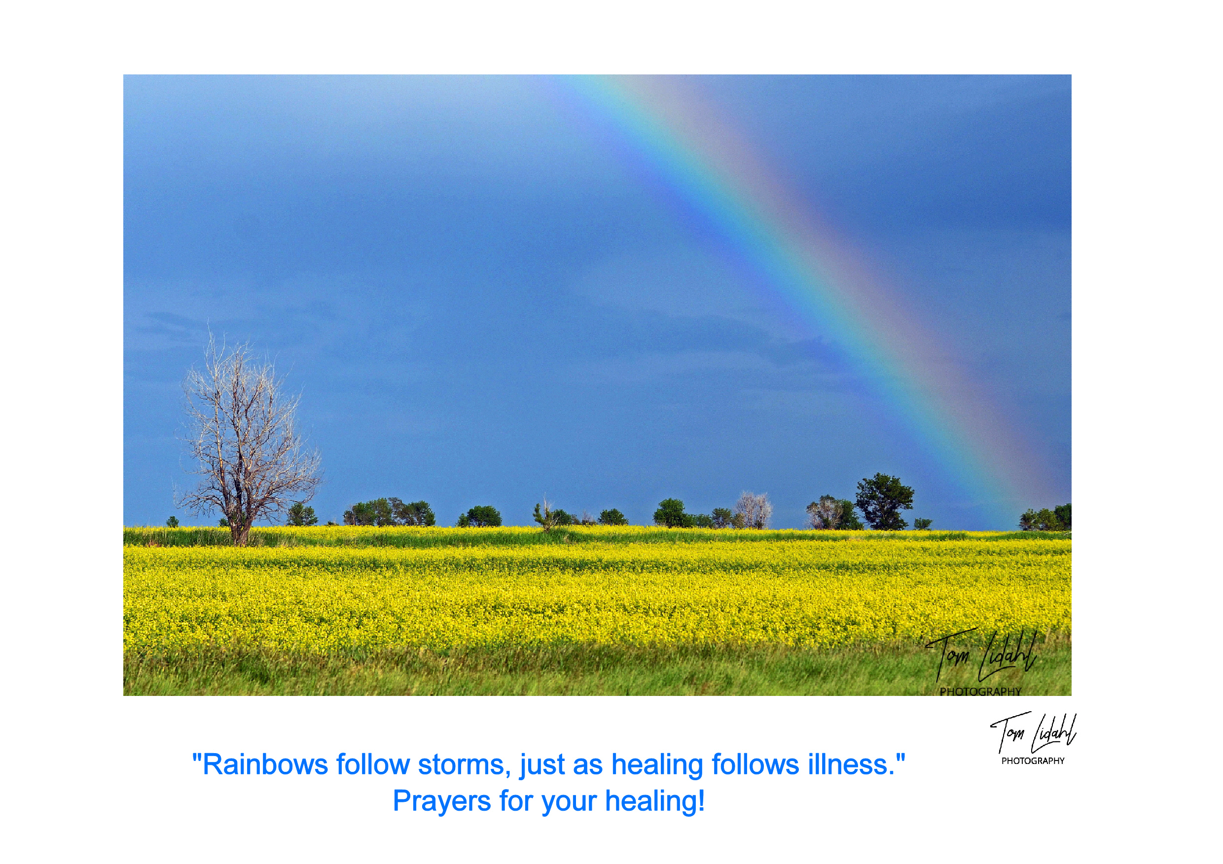 Rainbows follow storms, just as healing follows illness. Prayers for your healing! quantity